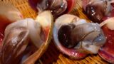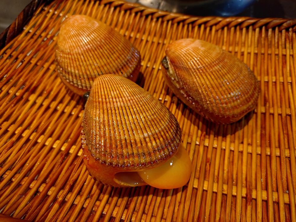 愛知県三河湾で水揚げされたザルガイが入荷しました。イシガイ科の希少貝で、春〜初夏が旬。網状の殻と肉厚な身、濃厚な磯の甘みが特徴です。ザルガイの魅力は、プリプリの弾力と噛むほどに広がるクリーミーな甘み。赤酢シャリとの相性が抜群です。