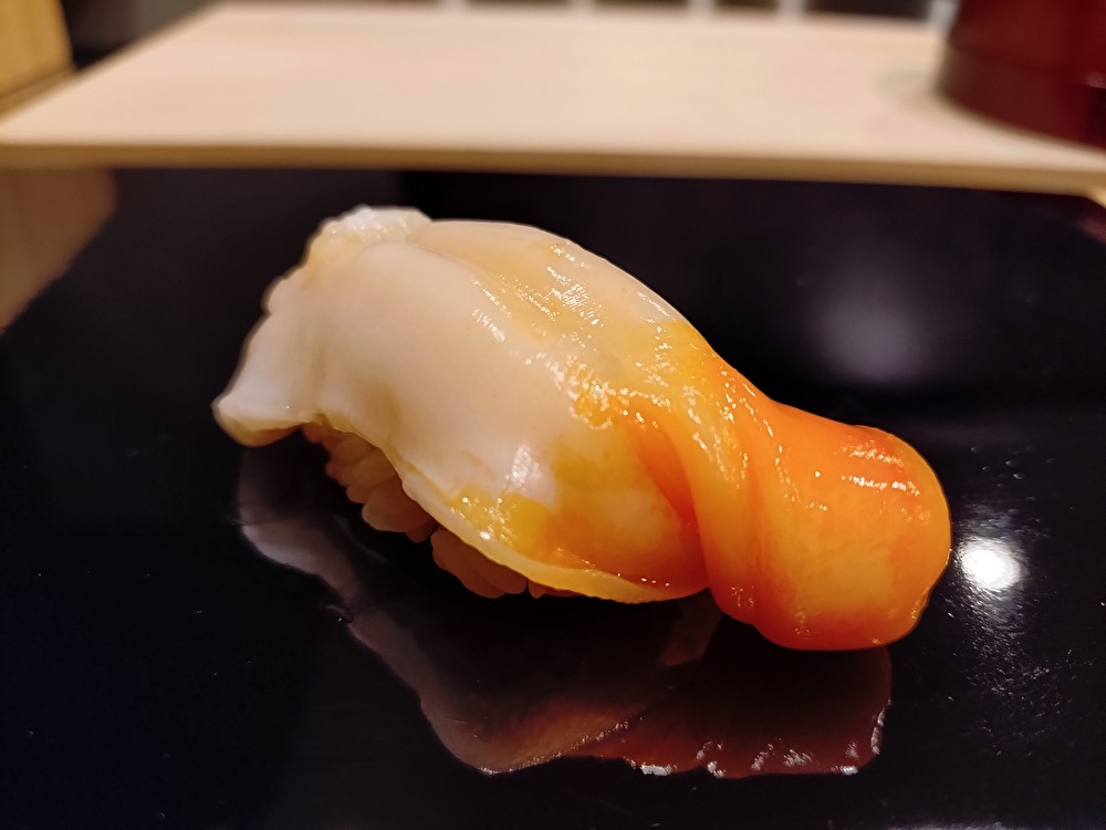 【鮨黒舟】では、豊洲経由の鮮度抜群ザルガイを職人が丁寧に湯引きし、江戸前技法で握り上げます。ザルガイの旨味と甘み、シャリの塩味と酸味が調和し、店主選りすぐりの日本酒と絶妙にマリアージュします。